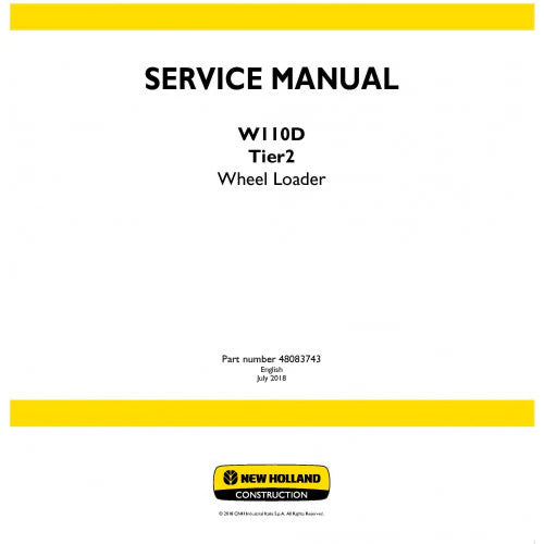 New Holland W110D Wheel Loader Pdf Repair Service Manual (p. Nb. 48083743) Tier 2