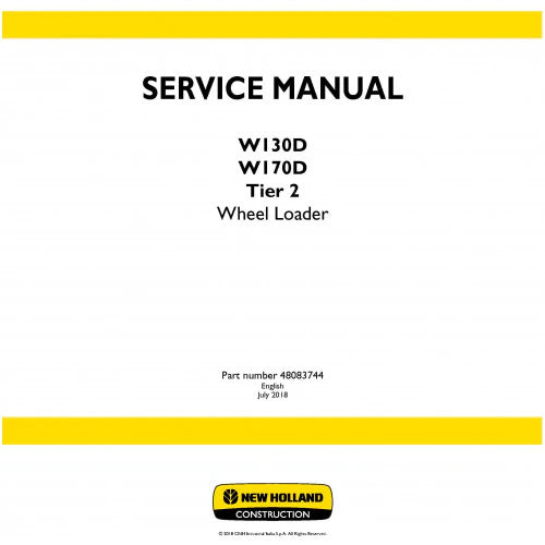 New Holland W130D, W170D Wheel Loader Pdf Repair Service Manual (p. Nb. 48083744) Tier 2