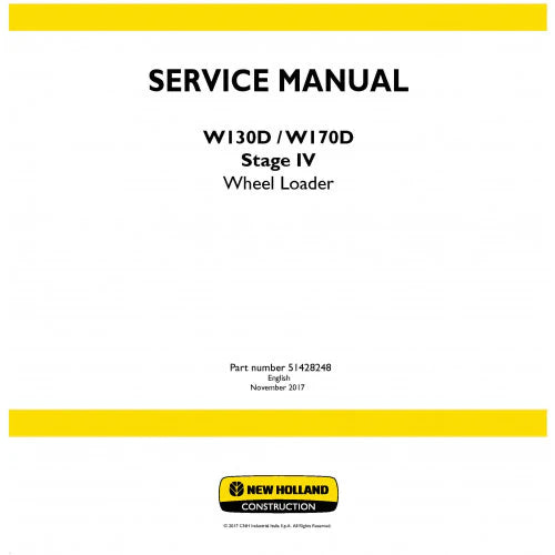 New Holland W130D Wheel Loader Pdf Repair Service Manual (p. Nb. 51428248) Tier 4b
