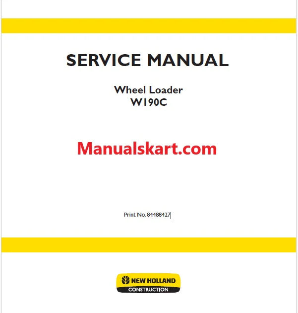 New Holland W190C Wheel Loader Pdf Repair Service Manual (P. Nb. 84488427)