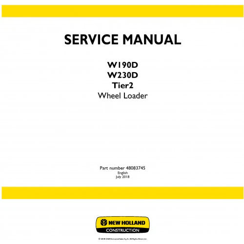 New Holland W190D, W230D Wheel Loader Pdf Repair Service Manual (p. Nb. 48083745) Tier 2