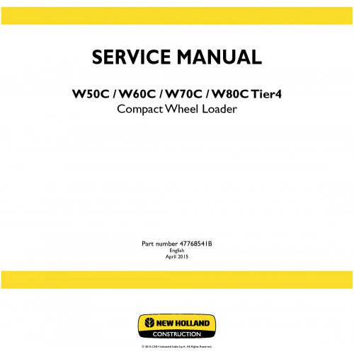 New Holland W50C, W60C, W70C, W80C Compact Wheel Loader Pdf Repair Service Manual (p. Nb. 47768541b) (Tier 4)
