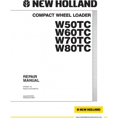 New Holland W50TC, W60TC, W70TC, W80TC Wheel Loader Pdf Repair Service Manual Na (p. Nb. 87630261)