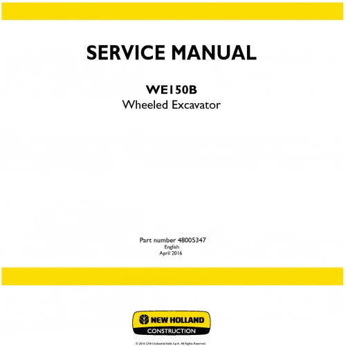 New Holland WE150B Wheeled Excavator Pdf Repair Service Manual (p. Nb. 48005347)